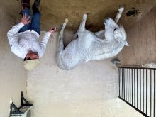 Karen Bell, usually pretty timid of animals, got brave and fed the alpaca